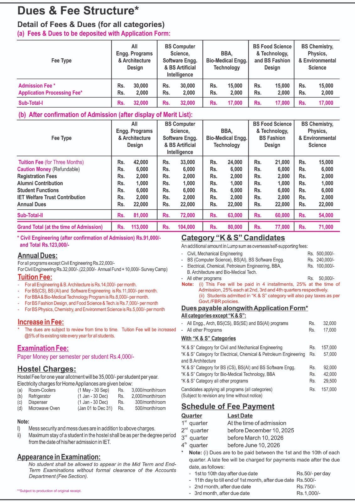 Following are the dues of all the programs offered in 2025.